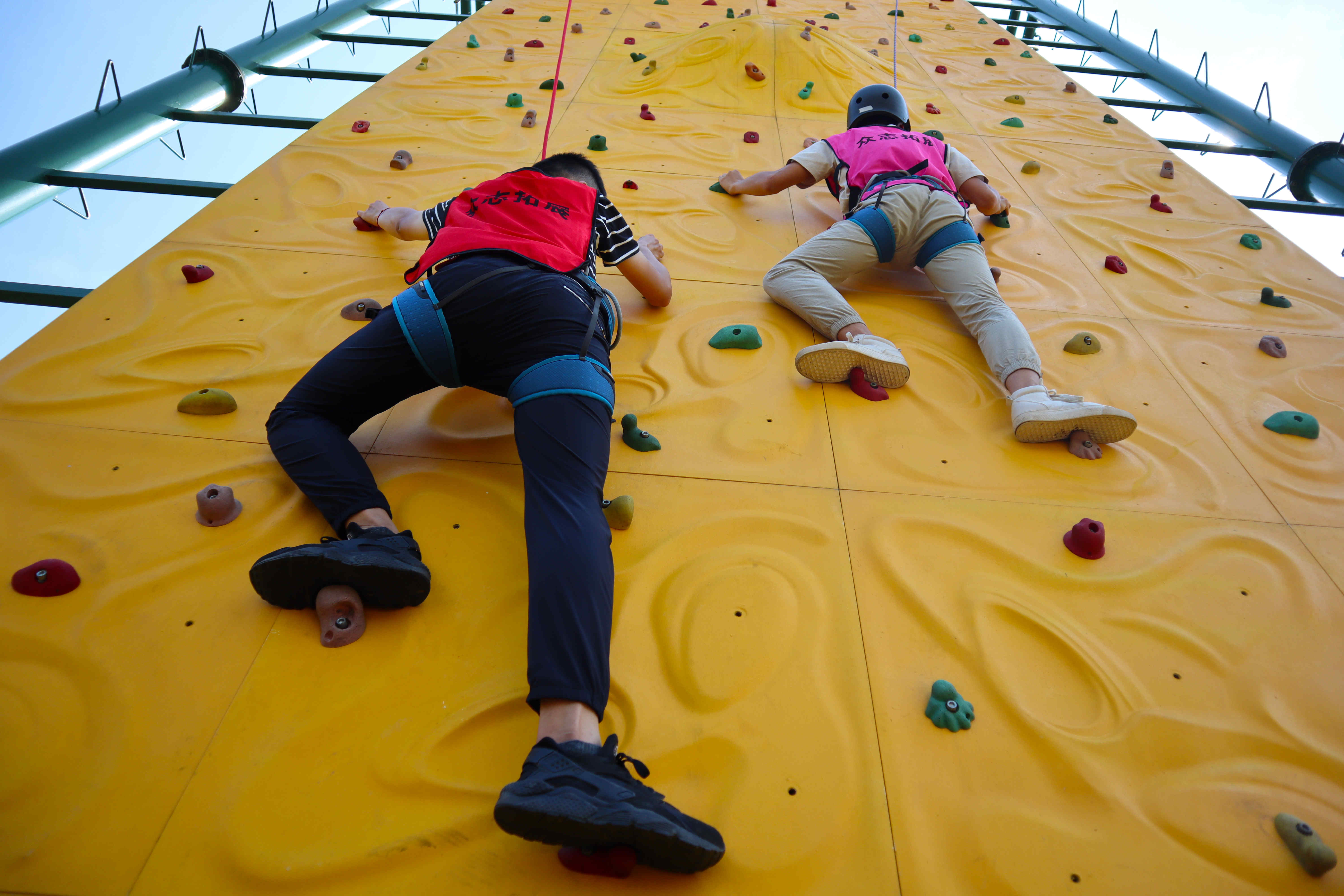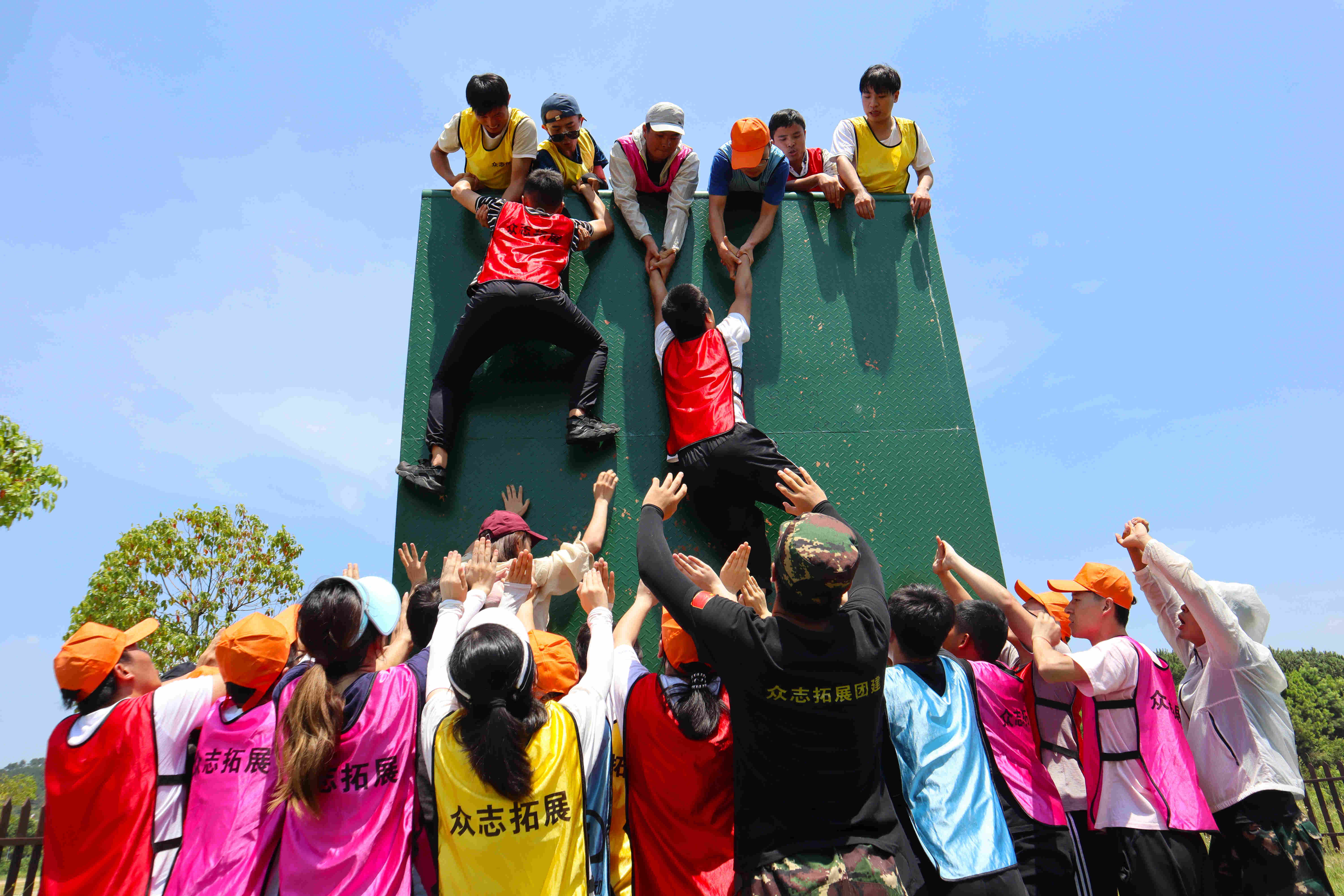 本次拓展活動為期三天,四十余人分為紅、藍、粉、黃四隊,以“挑戰(zhàn)自我,熔煉團隊,凝心聚力,砥礪前行”為主題,開始了一輪又一輪火熱又豐富的活動項目:“團隊浮橋”讓大家深刻了解了團結的力量與重要性;“高空攀巖”鍛煉了大家的心智和敢于挑戰(zhàn)的勇氣;“畢業(yè)墻”讓大家感受到了相互信任與團隊的支持。