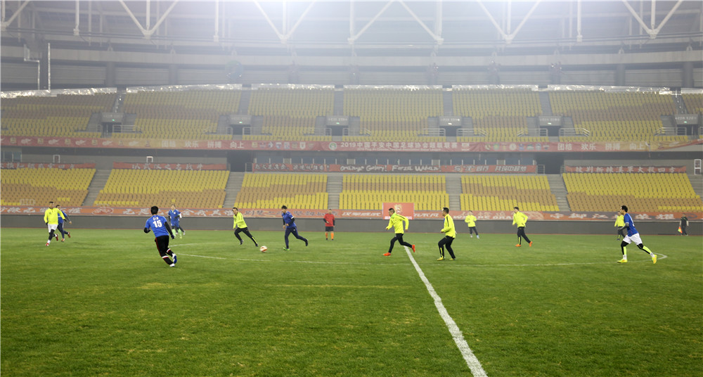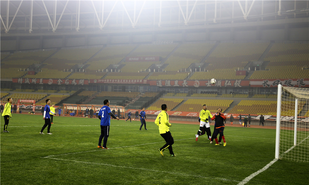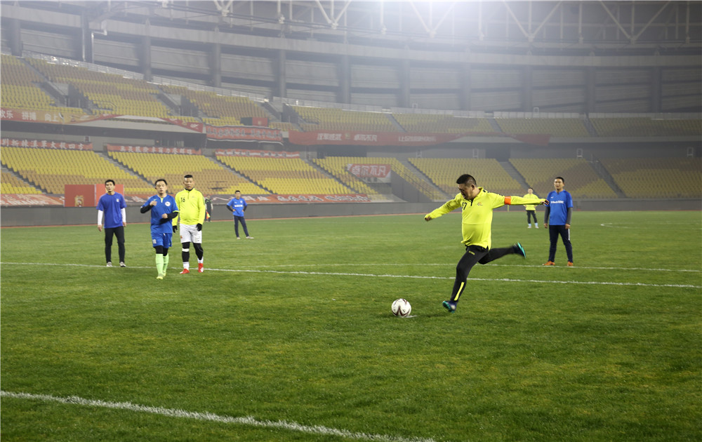 五環(huán)體育中心是武漢市為舉辦第七屆世界軍人運(yùn)動(dòng)會(huì)新建的規(guī)模最大的比賽場館,曾承擔(dān)了軍運(yùn)會(huì)足球、乒乓球、水上救生等項(xiàng)目的比賽。盡管軍運(yùn)會(huì)已經(jīng)過去近三個(gè)月了,但如今置身其中,仍然能感受到軍運(yùn)賽事帶來的澎湃與激情。或許這種情緒也感染著場上的隊(duì)員們,他們從一開始就迅速進(jìn)入了比賽狀態(tài),身穿藍(lán)色球衣的東西湖區(qū)聯(lián)隊(duì)在開場不久便率先破門攻入一球,但公司的隊(duì)員們?nèi)匀环€(wěn)扎穩(wěn)打,很快就將比分扳平。重回同一起跑線的兩隊(duì)在隨后的比賽中更是你來我往,展開了高質(zhì)量的攻防大戰(zhàn),比分交替領(lǐng)先,最終雙方又各進(jìn)四球,在一場精彩的進(jìn)球大戰(zhàn)后以5:5的比分握手言和。
