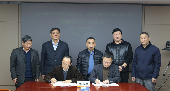 2021年3月11日上午,武漢市政設(shè)計(jì)院與上海同筑信息科技有限公司在漢簽署戰(zhàn)略合作協(xié)議,將雙方數(shù)字化合作進(jìn)一步推向深入。武漢市政設(shè)計(jì)院總經(jīng)理姚華、副總經(jīng)理陳建斌,上海同筑信息科技有限公司董事長(zhǎng)尹仕友、副總經(jīng)理劉建成及雙方相關(guān)人員出席簽約儀式。