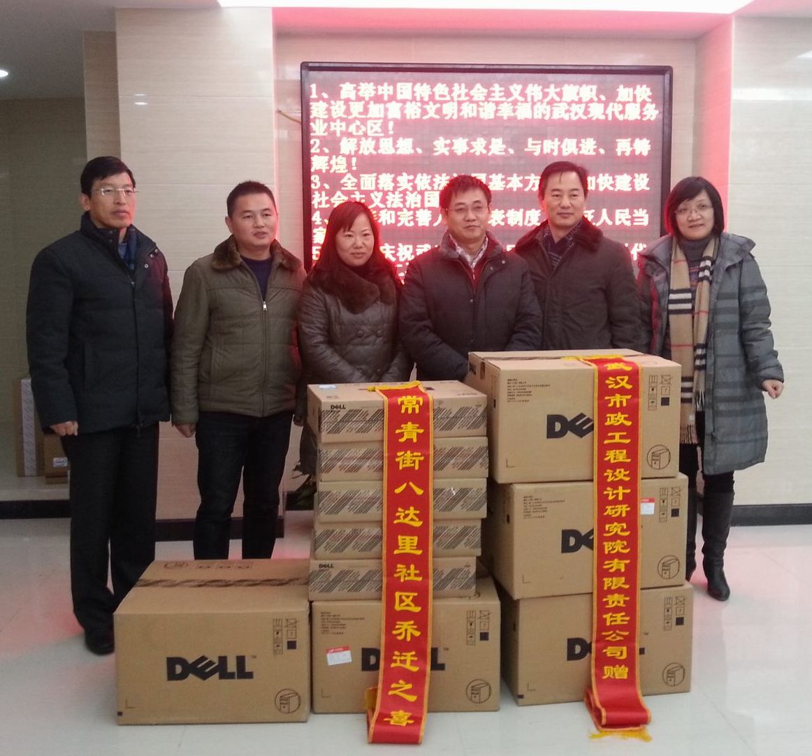 ??? 12月25日,公司為八達(dá)里社區(qū)喬遷,捐贈了五臺新臺式電腦,提供給社區(qū)辦公使用。武漢市政院董事長柯昌春將電腦送到八達(dá)里社區(qū)書記肖漢梅手中的時(shí)候,肖書記代表八達(dá)里社區(qū)的全體社區(qū)工作者向公司表示深深的謝意,感謝共建單位和領(lǐng)導(dǎo)們對社區(qū)工作的大力支持。
