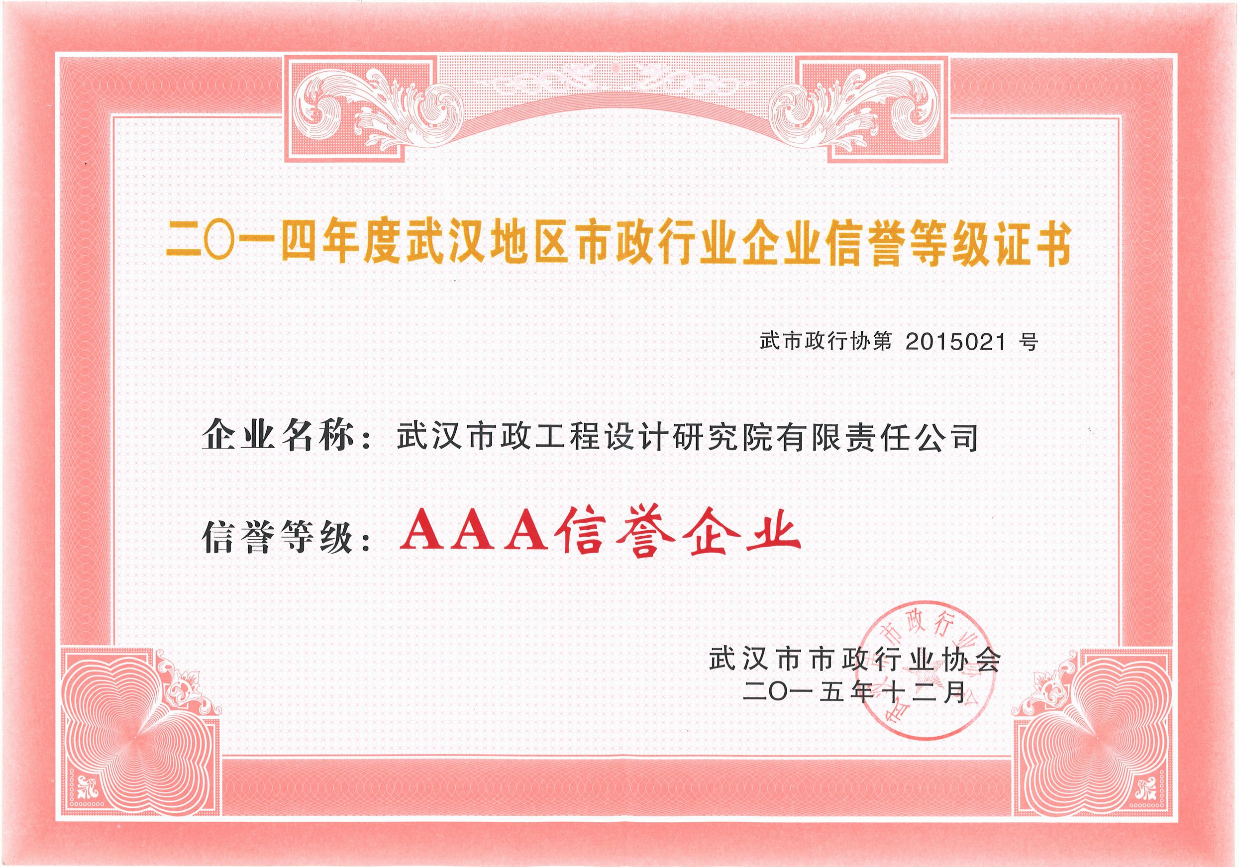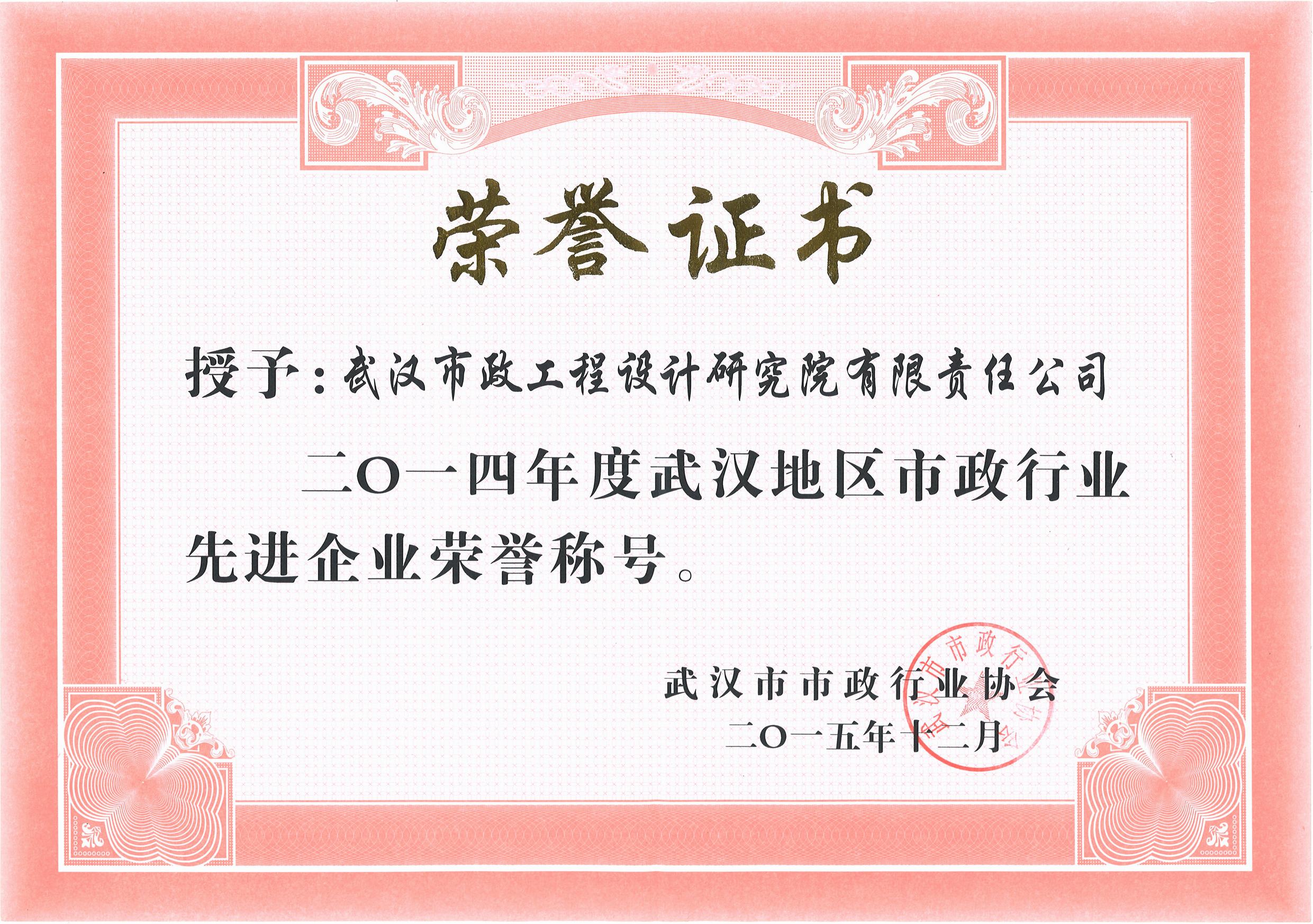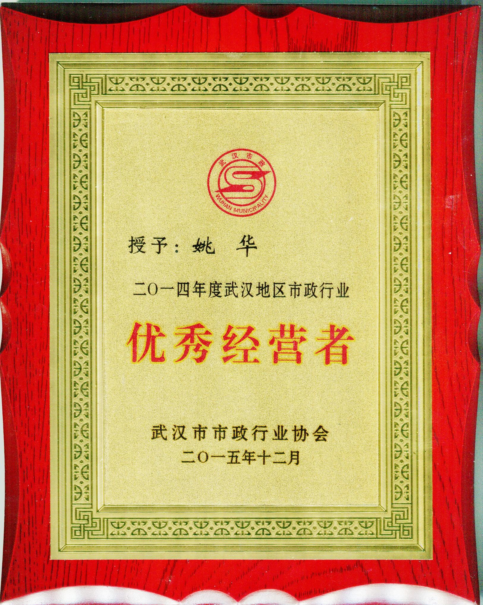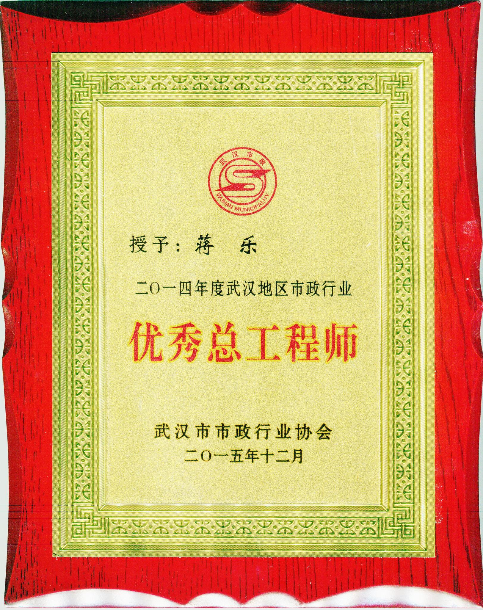 ??? 在2014年度的武漢市市政行業(yè)協(xié)會(huì)榮譽(yù)評選中,公司榮獲了“武漢地區(qū)市政行業(yè)先進(jìn)企業(yè)”、“AAA信譽(yù)企業(yè)”等榮譽(yù)稱號(hào);總經(jīng)理姚華同志榮獲“優(yōu)秀經(jīng)營者”稱號(hào);副總經(jīng)理、總工程師蔣樂榮獲“優(yōu)秀總工程師”稱號(hào);萬飛、盛建偉榮獲“優(yōu)秀監(jiān)理工程師”稱號(hào)。