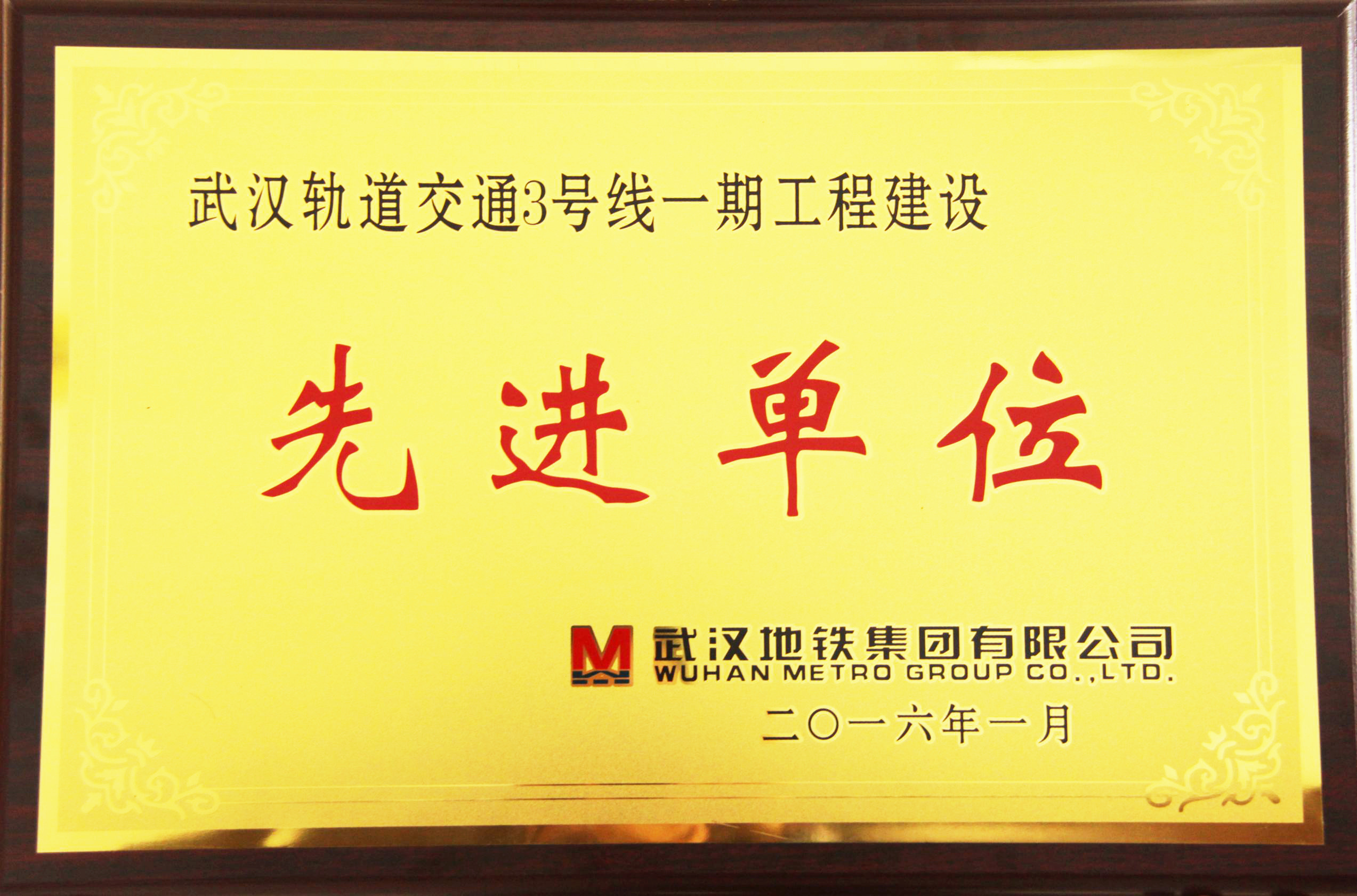 ??? 近日,武漢地鐵集團(tuán)有限公司頒發(fā)文件,表彰一批在武漢軌道交通三號(hào)線一期工程建設(shè)中表現(xiàn)優(yōu)異的先進(jìn)單位。公司由于參與并圓滿完成了三號(hào)線一期工程的勘察及部分站點(diǎn)和區(qū)間的設(shè)計(jì)工作,榮獲“先進(jìn)單位”榮譽(yù)稱號(hào)。