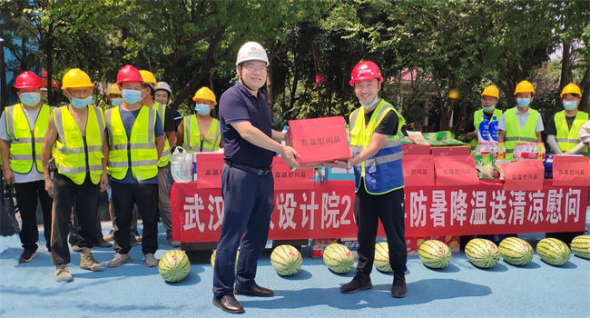 公司領導先后來到長江新城諶家磯再生水廠工程、湯遜湖污水處理廠尾水排江工程總承包項目、環(huán)湖中路排水工程測量、龍王嘴污水處理廠、青山海綿城市等項目現(xiàn)場,詳細了解項目進展情況、高溫防暑措施和疫情防控情況,并為堅守崗位的員工們送上高溫慰問品,感謝他們在城市建設中做出的積極貢獻,叮囑他們做好防暑降溫和個人防護,注意勞逸結合,在保證項目按期推進的同時務必保證個人的安全與健康。